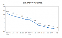 1 — 8 月份,全国房地产开发投资 90809 亿元,同比下降 7.4% ;其中,住宅投资 68878 亿元,下降 6.9% 。