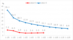 中国机械工业联合会统计数据显示,1-8月份,规模以上工业增加值同比增长3.6%。8月份,规模以上工业增加值同比实际增长4.2%(增加值增速均为扣除价格因素的实际增长率)。从环比看,8月份,规模以上工业增加值比上月增长0.32%。