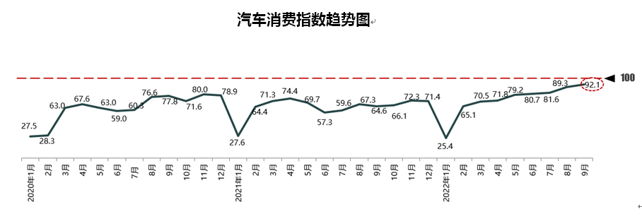 10月8日,中国汽车流通协会发布最新一期“汽车消费指数”:2022年9月份汽车消费指数为92.1,高于上月。