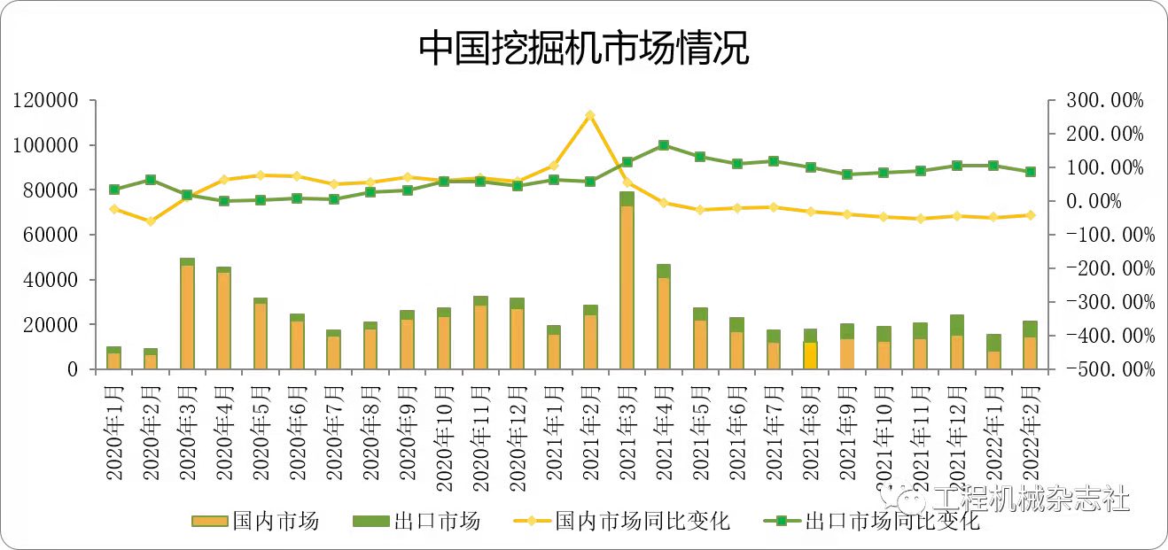 2022年一季度挖掘机国内销量预计仍将负增长,叠加2021年高基数原因,降幅较大。2022全年或将呈现“前低后高”的情况。