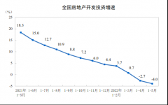 1 — 5 月份,商品房销售面积 50738 万平方米,同比下降 23.6% ;其中,住宅销售面积下降 28.1% 。商品房销售额 48337 亿元,下降 31.5% ;其中,住宅销售额下降 34.5% 。