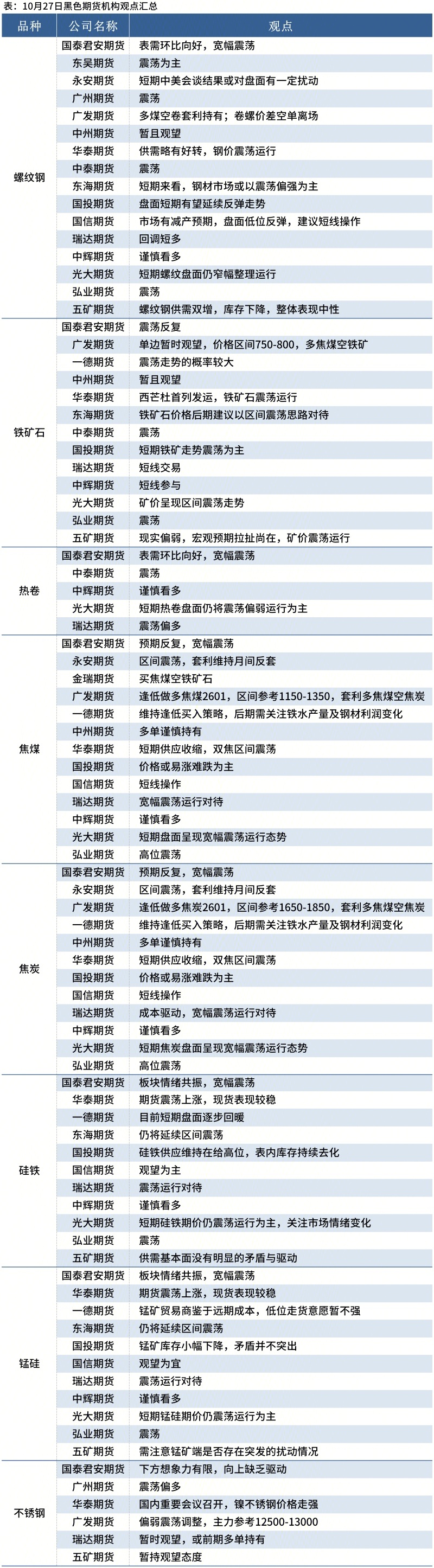 据Mysteel统计10月27日18家期货机构操作策略,其中多数机构料螺纹钢震荡运行,铁矿石震荡运行。具体汇总内容如下: