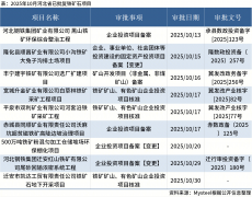 据Mysteel不完全统计,2025年10月河北省共批复铁矿石相关项目9个,分别是3个铁矿矿山、有色矿山企业投资项目核准、4个企业投资项目备案或【变更】、1个企业、事业单位工业技术改造项目备案【变更】和1个矿山开发项目(非金属、非煤矿山)备案。