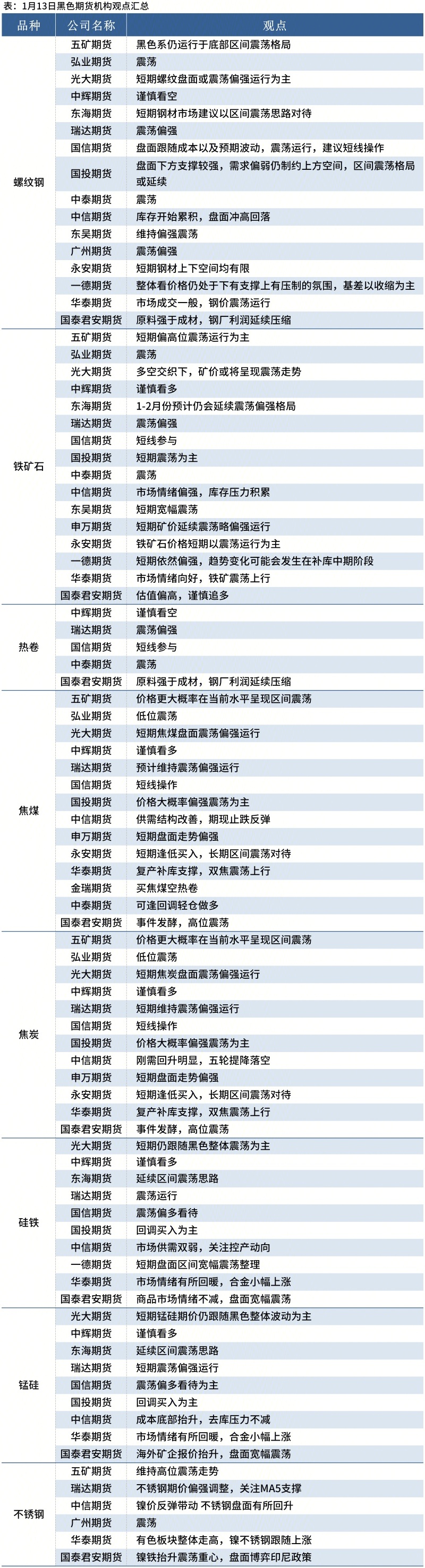 据Mysteel统计1月13日18家期货机构操作策略,其中多数机构料螺纹钢震荡运行,铁矿石震荡运行。具体汇总内容如下: