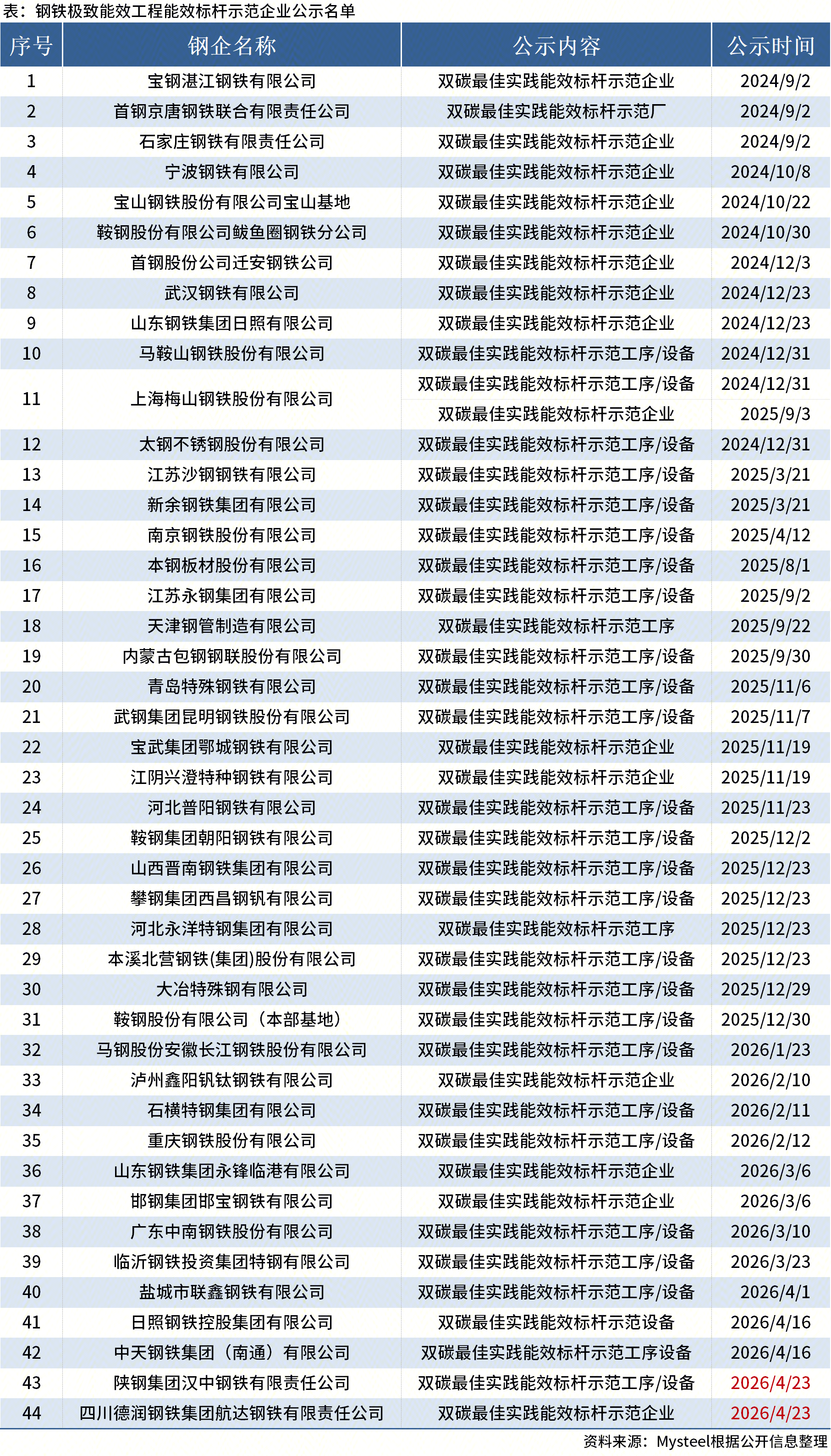 自2024年9月起,中国钢铁工业协会开展了钢铁极致能效工程能效标杆示范企业公示工作。