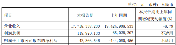 马钢股份4月25日披露2026年第一季度报告。公司实现营业总收入177.18亿元,同比下降8.79%;实现净利润0.42亿元,同比扭亏为盈。
