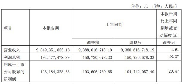 甬金股份4月25日披露2026年第一季度报告。公司实现营业总收入98.49亿元,同比增长4.91%;实现净利润1.26亿元,同比增长20.47%。