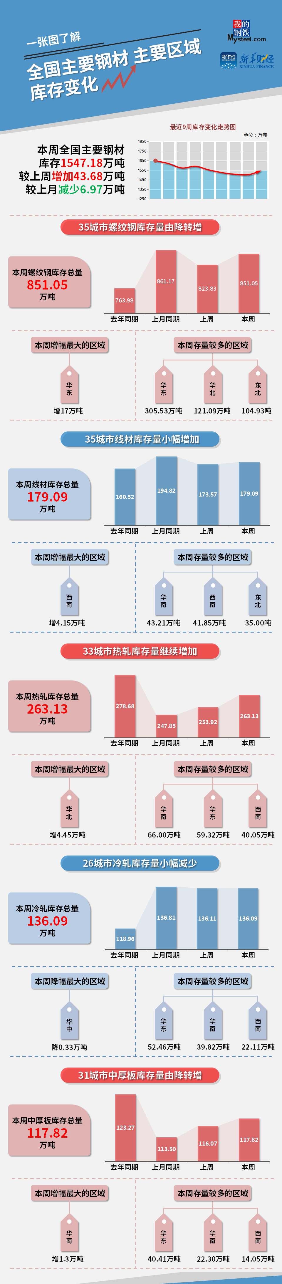 (备注:本文中钢材社会库存总量=35城市螺纹库存+35城市线材库存+33城市热轧库存+23城市冷轧库存+31城市中厚板库存)