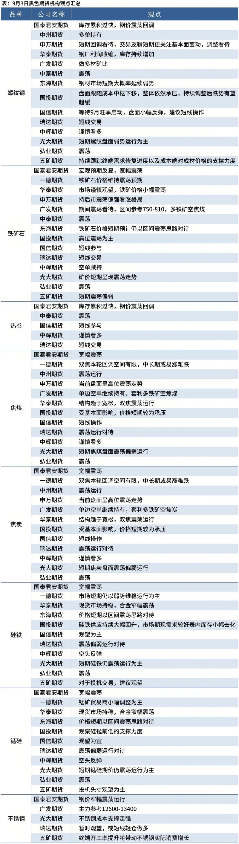 据Mysteel统计9月3日15家期货机构操作策略,其中多数机构料螺纹钢震荡运行,铁矿石震荡运行。具体汇总内容如下: