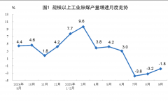 原煤生产降幅收窄。9月份,规上工业原煤产量4.1亿吨,同比下降1.8%,降幅比8月份收窄1.4个百分点;日均产量1372万吨。