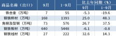 9月,中国出口钢铁棒材168万吨,同比增长25.0%;1-9月累计出口1393万吨,同比增长48.3%。其他出口情况如下表所示: