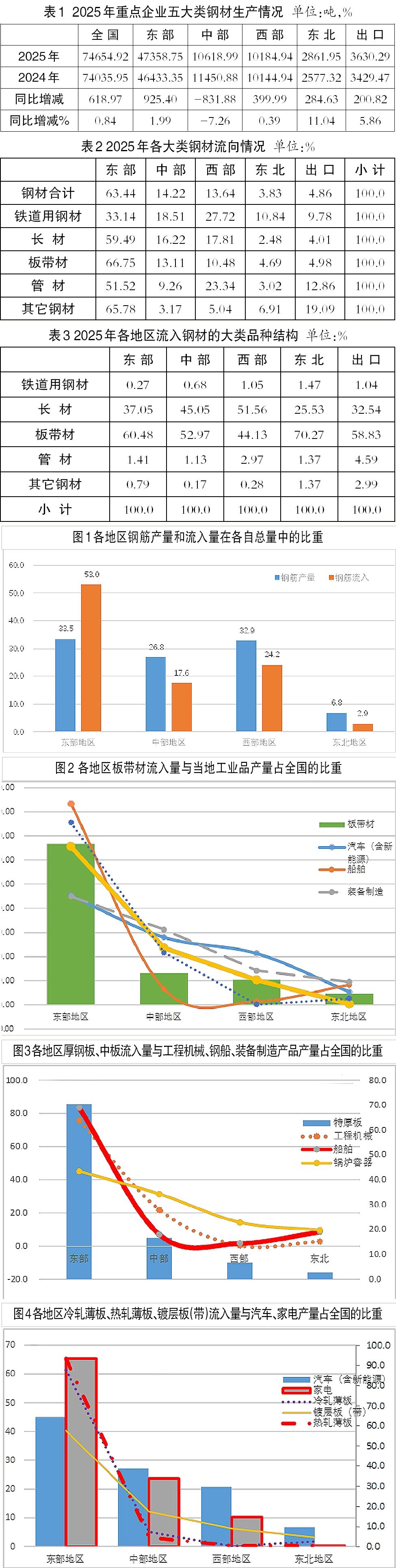 东部地区的房地产投资在全国房地产投资总额中的比重超过50%。在投资拉动下,2025年,钢筋、线材等长材品种更多流向了东部地区。