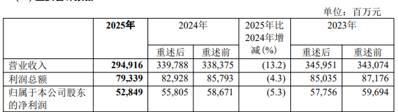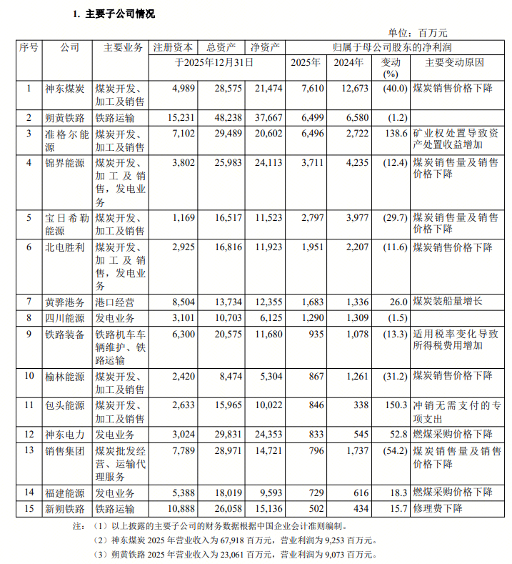 中国神华发布2025年年度报告,实现营业收入2949.16亿元,同比下降13.2%;归属于上市公司股东的净利润528.49亿元,同比下降5.3%。