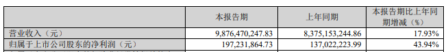 新兴铸管公告称,2026年第一季度实现营业收入98.76亿元,同比增长17.93%;归属于上市公司股东的净利润1.97亿元,同比增长43.94%。