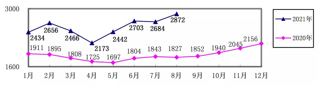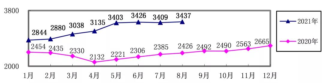 废钢8月份加权平均采购成本为3436.92元/吨,环比升高27.52元/吨,升幅为0.81%。1-8月累计平均采购成本为3213.41元/吨,同比升高883.87元/吨,升幅为37.94%。