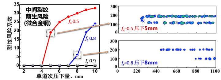 为此,东北大学联合攀钢、唐钢、宝武、中冶京诚等企业和设计院,历经10年攻关,从理论、工艺、装备等方面,研发应用了适用于我国“一线多产”的动态重压下关键工艺与装备技术,即通过在连铸坯凝固末端及完全凝固后实施大变形压下(压下量约铸坯厚度10%),充分利用连铸坯内热外冷高达500℃的温差特点,实现压下量向其心部的高效传递,以达到充分改善偏析疏松、闭合凝固缩孔的冶金效果。