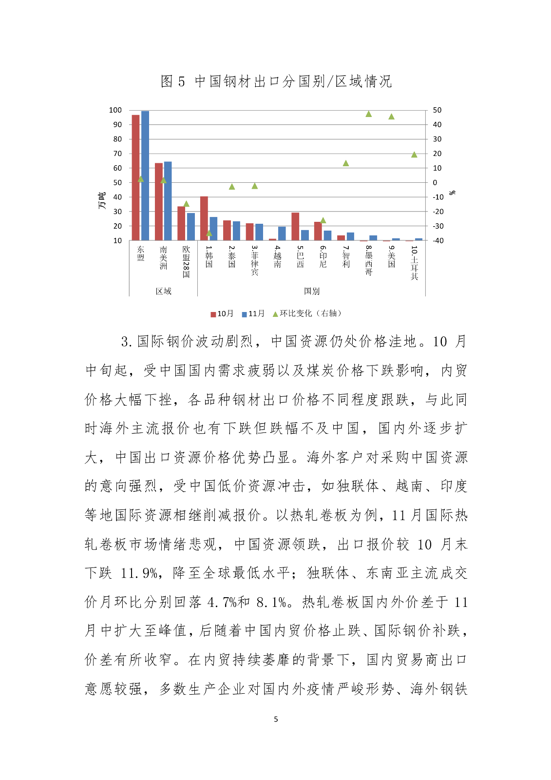 海关数据显示,2021年前11个月我国累计出口钢材6187.5万吨,同比增长26.7%。同期,累计进口钢材1326.7万吨,同比下降29.6%;累计进口钢坯1254.9万吨,同比下降28.2%。