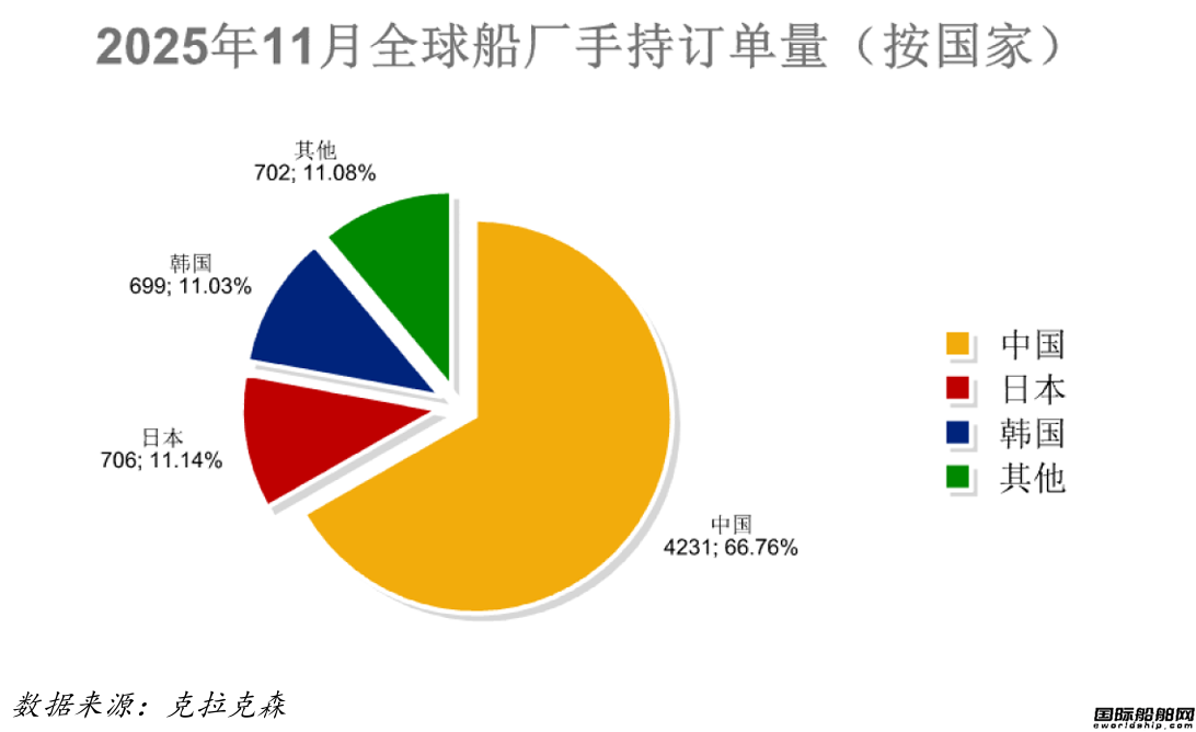 全球手持订单6338艘,中国船厂4231艘占全球市场份额66.76%