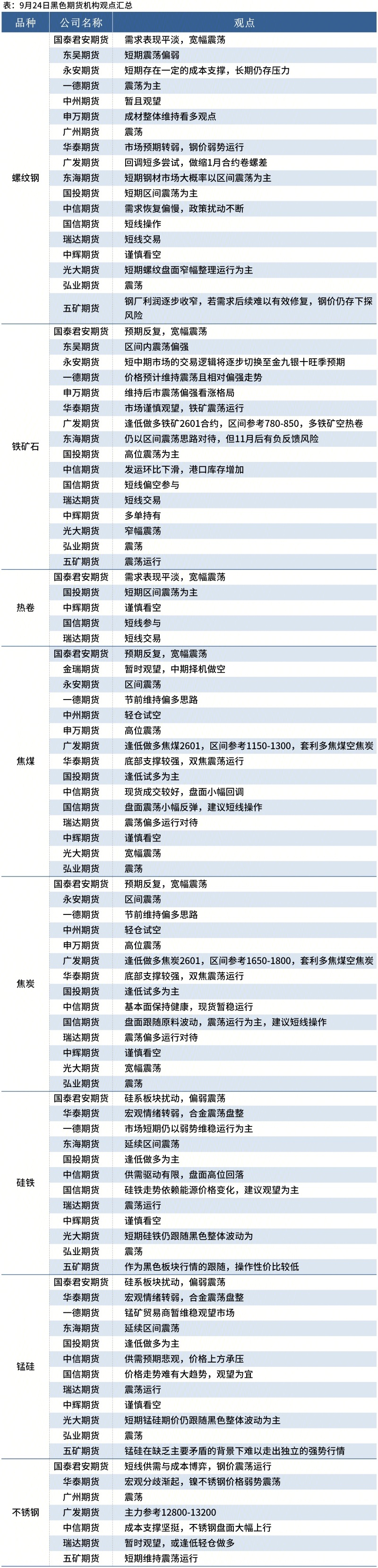 据Mysteel统计9月24日19家期货机构操作策略,其中多数机构料螺纹钢震荡运行,铁矿石震荡运行。具体汇总内容如下: