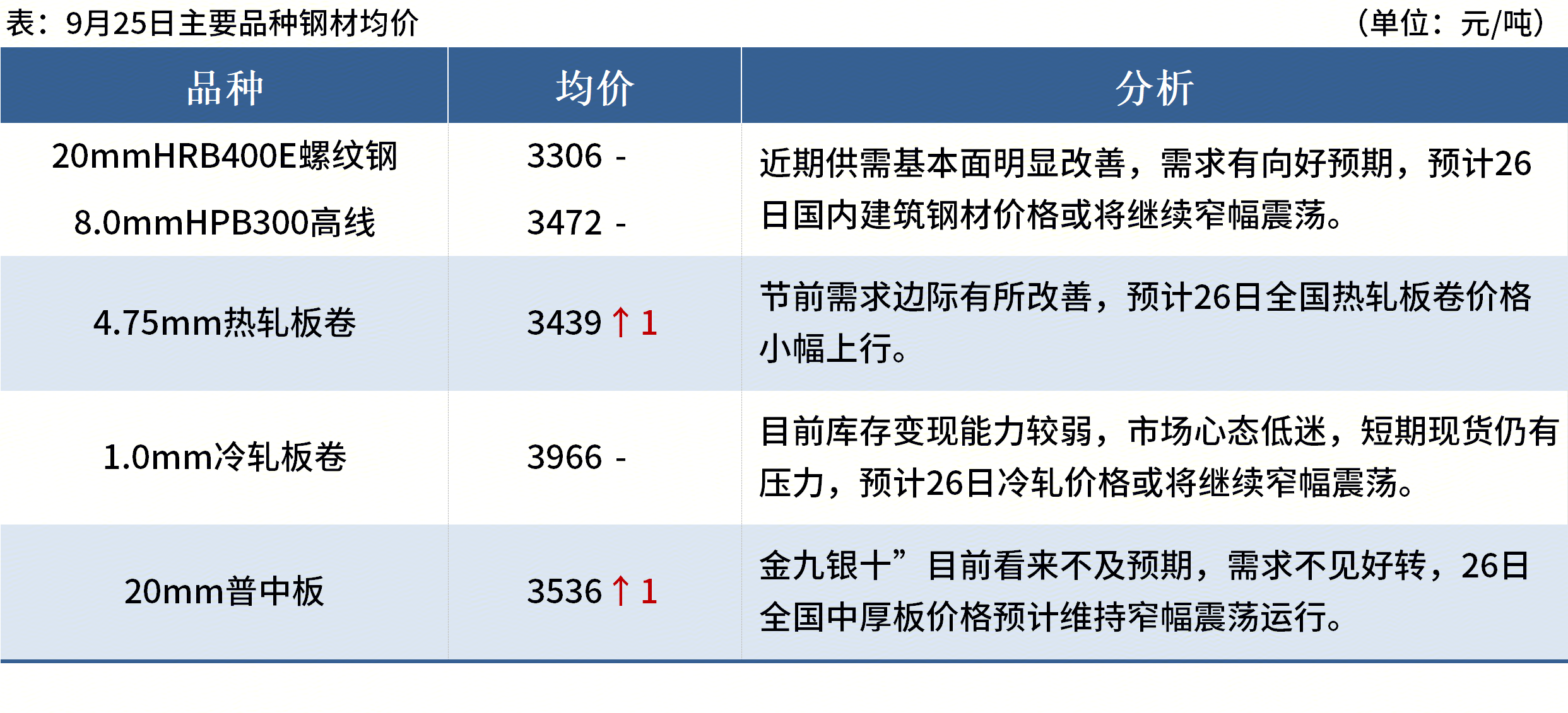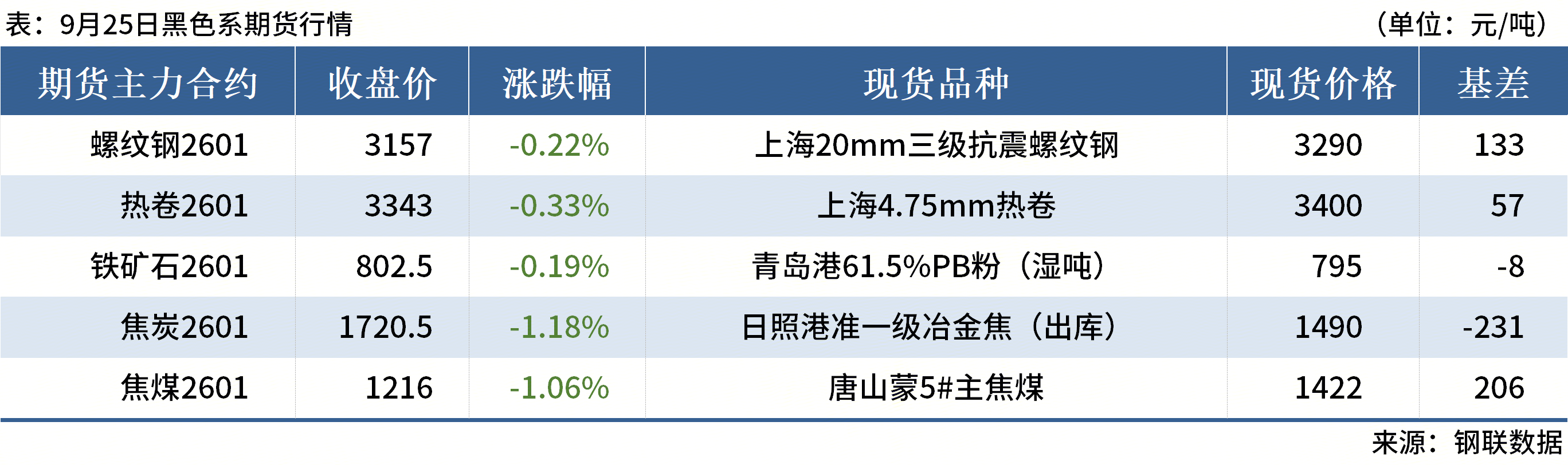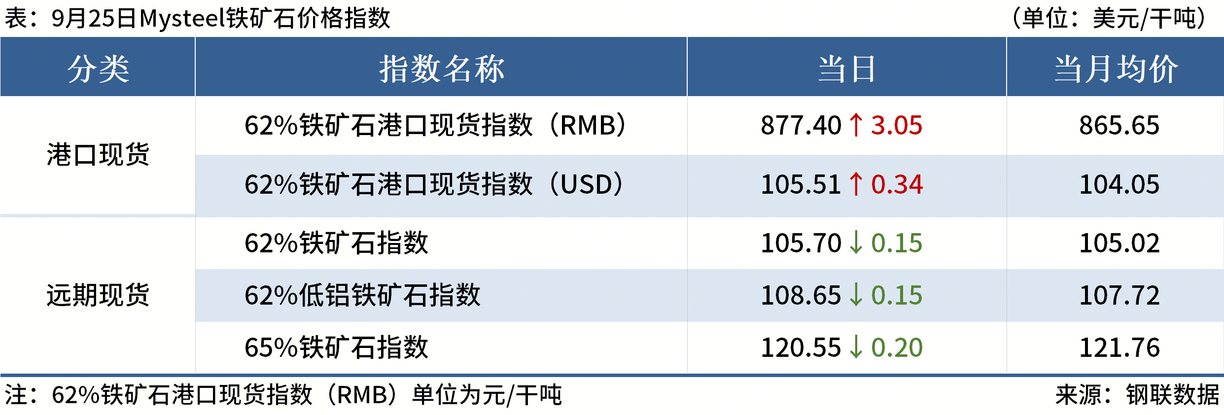 ◎9月25日,全国主港铁矿石成交111.10万吨,环比减28.3%;237家主流贸易商建筑钢材成交10.82万吨,环比增4.1%。