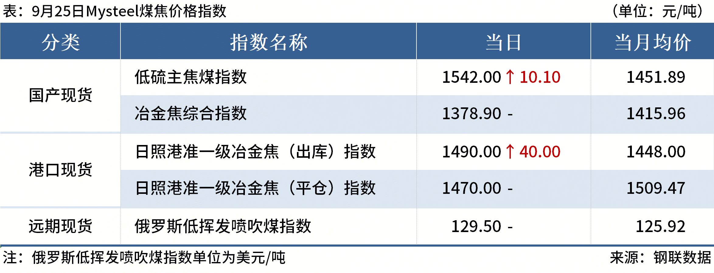 ◎9月25日,主流焦企提涨捣固焦炭50-55元/吨,顶装焦炭80-85元/吨。