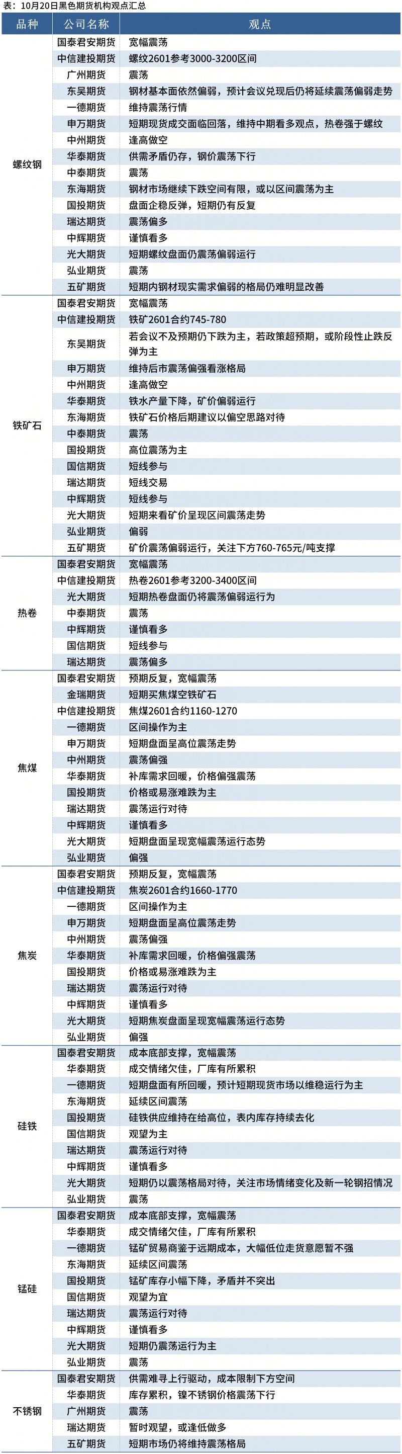 据Mysteel统计10月20日17家期货机构操作策略,其中多数机构料螺纹钢震荡运行,铁矿石震荡运行。具体汇总内容如下: