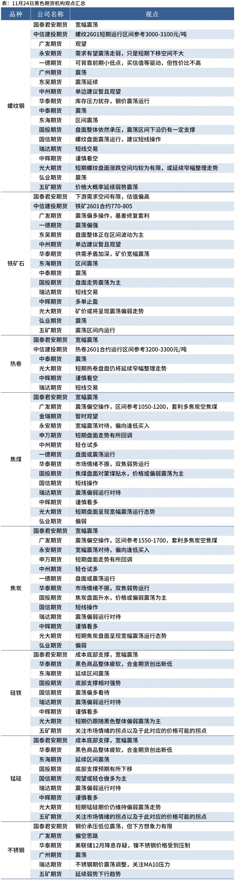 据Mysteel统计11月24日20家期货机构操作策略,其中多数机构料螺纹钢震荡运行,铁矿石震荡运行。具体汇总内容如下: