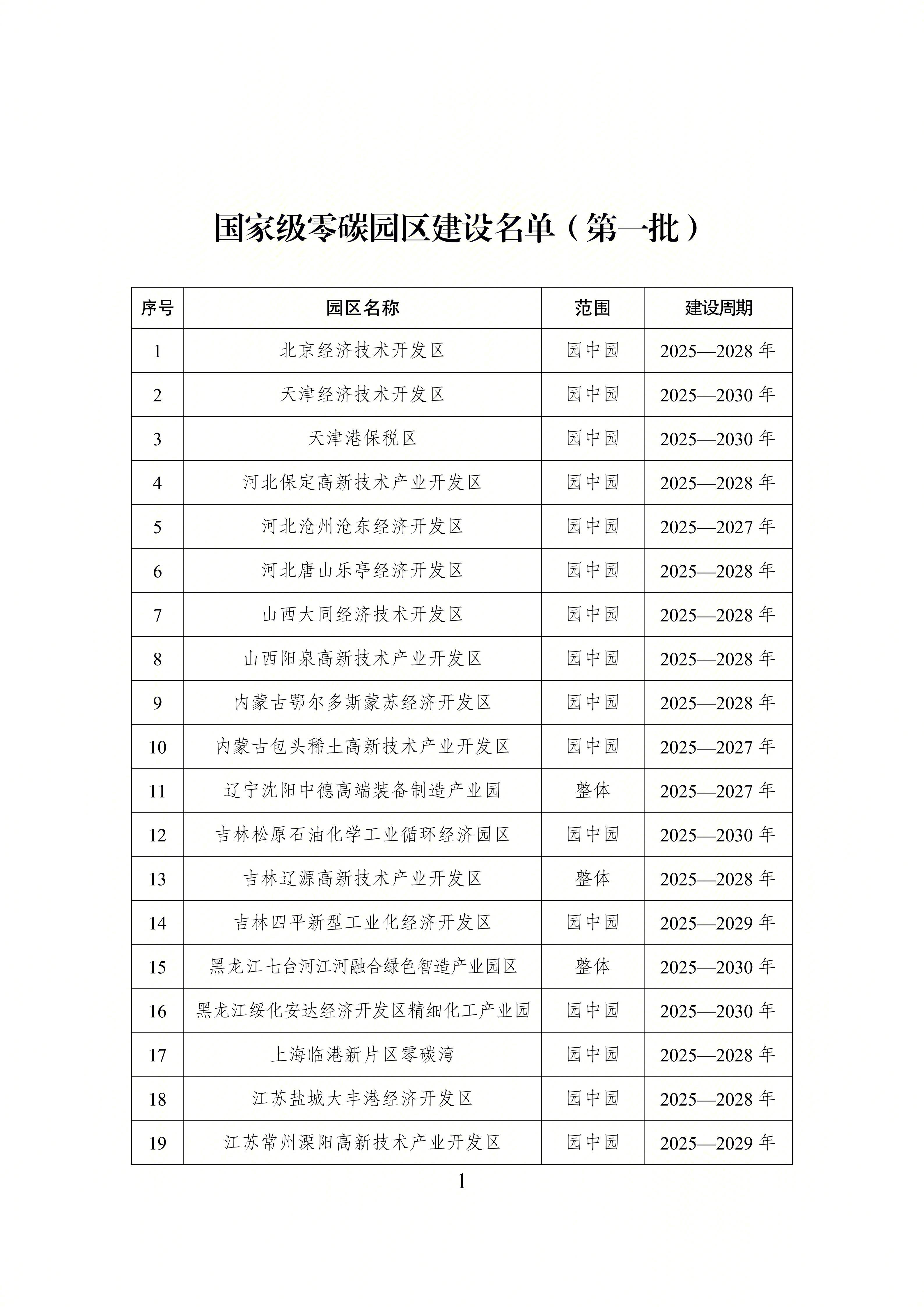 以下是第一批国家级零碳园区名单: