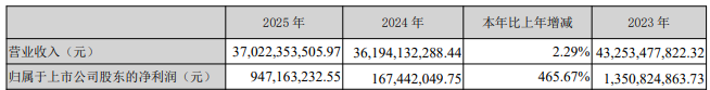 新兴铸管披露2025年年度报告。2025年,公司实现营业总收入370.22亿元,同比增长2.29%;实现净利润9.47亿元,同比增长465.67%。