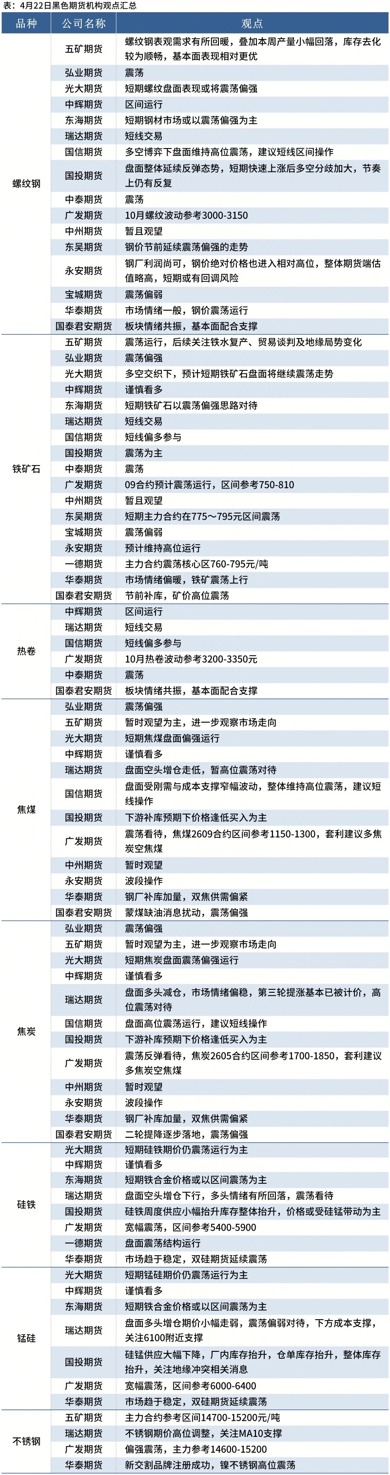 据Mysteel统计4月22日17家期货机构操作策略,其中多数机构料螺纹钢震荡运行,铁矿石震荡运行。具体汇总内容如下:
