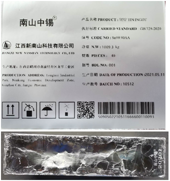 近期,我所收到江西新南山科技有限公司报送的相关申请材料。根据《上海期货交易所有色金属交割商品注册管理规定》等有关规定,经我所实地注册检查和抽样检验,该公司生产的“南山中锡”牌锡锭(Sn99.90AA)符合我所锡期货合约中规定的各项要求。经研究决定: