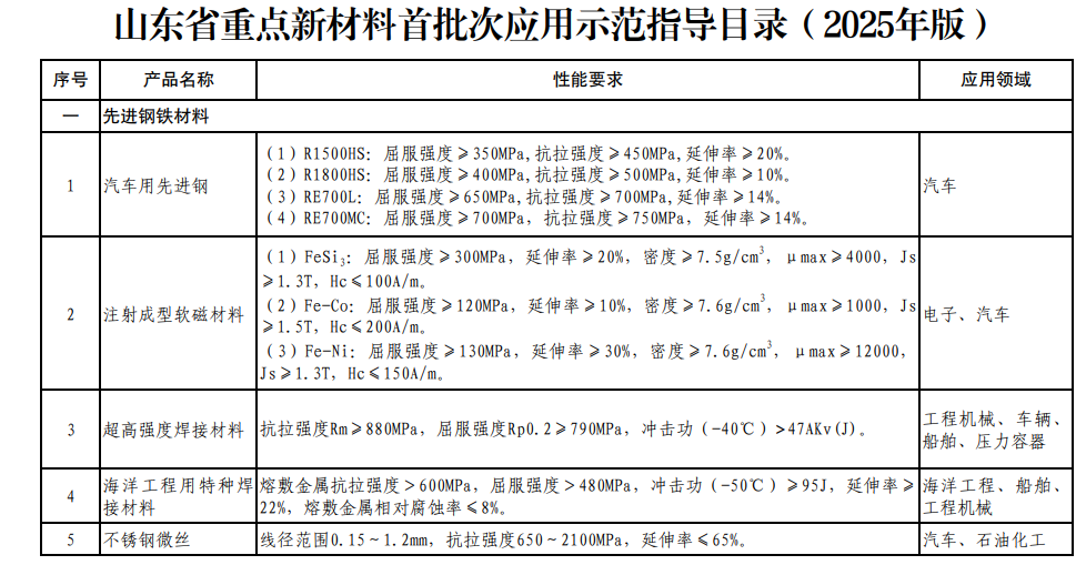 附件:山东省重点新材料首批次应用示范指导目录(2025年版)