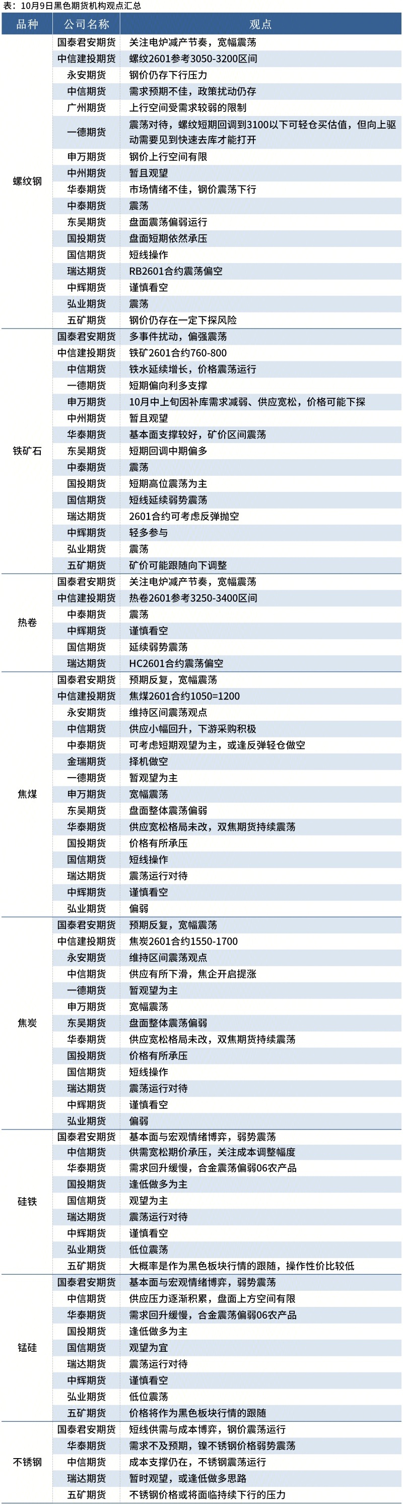 据Mysteel统计10月9日18家期货机构操作策略,其中多数机构料螺纹钢震荡运行,铁矿石震荡运行。具体汇总内容如下: