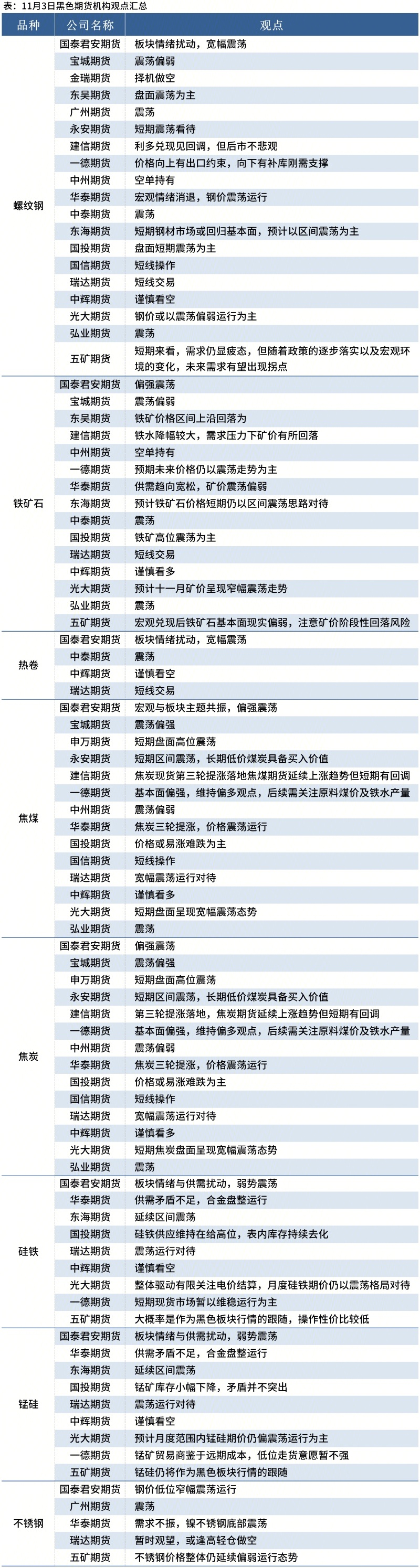 据Mysteel统计11月3日20家期货机构操作策略,其中多数机构料螺纹钢震荡运行,铁矿石震荡运行。具体汇总内容如下: