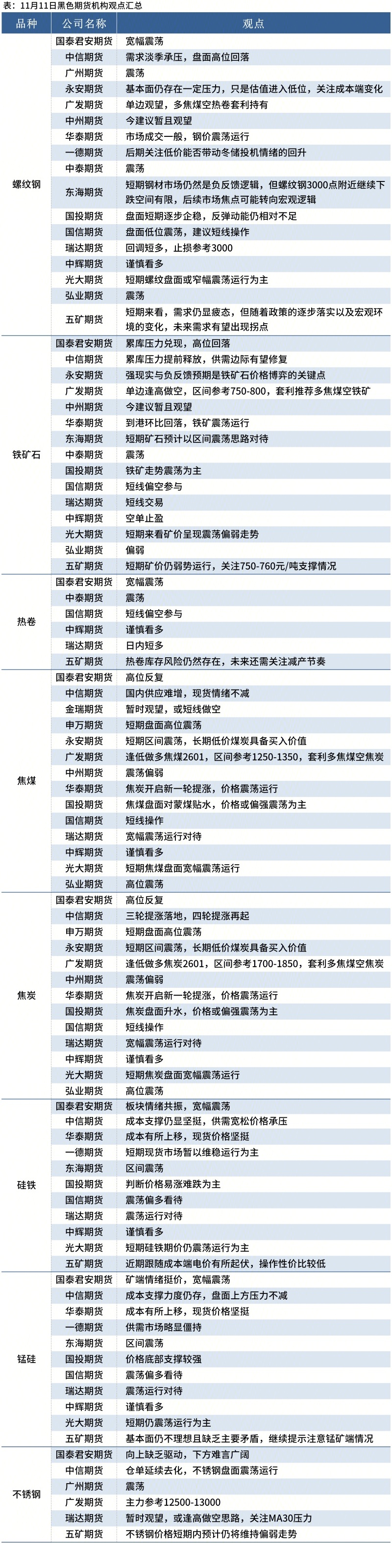 据Mysteel统计11月11日19家期货机构操作策略,其中多数机构料螺纹钢震荡运行,铁矿石震荡运行。具体汇总内容如下: