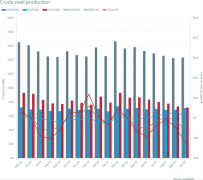 2025年10月,非洲粗钢产量为200万吨,同比提高0.8%;亚洲和大洋洲粗钢产量为1.024亿吨,同比下降8.2%;欧盟(27国)粗钢产量为1080万吨,同比下降3.5%;其他欧洲国家粗钢产量为360万吨,同比提高3.8%;中东粗钢产量为540万吨,同比提高9.2%;北美粗钢产量为910万吨,同比提高4.7%;俄罗斯和其他独联体国家+乌克兰粗钢产量为640万吨,同比下降5.1%;南美粗钢产量为370万吨,同比下降1.1%。