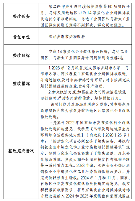 第二轮中央生态环境保护督察第60项整改任务已整改完成,并通过验收,拟按程序实施销号。根据《内蒙古自治区落实中央生态环境保护督察整改任务验收销号办法》有关要求,现将该项问题整改情况予以公示,公示期为2026年3月20日至4月2日。