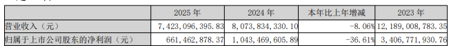 永兴材料4月27日披露年报,2025年实现营业收入74.23亿元,同比下降8.06%;实现净利润6.61亿元,同比下降36.61%。