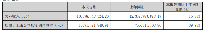 本钢板材公告,2026年第一季度实现营业收入103.78亿元,同比下降15.88%;归属于上市公司股东的净利润为-10.71亿元,上年同期为-7.66亿元。