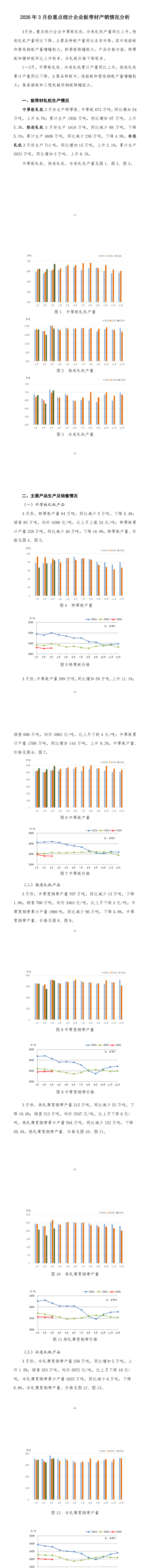 3月份,重点统计企业中厚板轧机、冷连轧机产量同比上升,热连轧机产量同比下降。主要品种板产量同比各有升降,其中造船板和管线钢板产量增幅较大,桥梁板降幅较大。产品价格方面,特厚板和镀锌板环比上升较多,冷轧板价格下降较多。